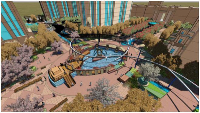 本方案設(shè)計(jì)面積為16000平方米,其中分為三塊地,一塊地為一層街邊綠地公園