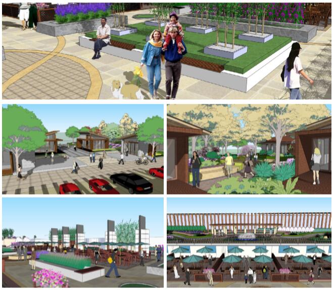 本方案設(shè)計面積為16000平方米,其中分為三塊地,一塊地為一層街邊綠地公園,一塊為商業(yè)四層屋頂花園,一塊為商業(yè)五層屋頂花園。 一層街邊綠地公園以自然生態(tài)為主要表達(dá)方式,在其中布局部分小商業(yè)建筑,建筑面積在500平方米以內(nèi),一層街邊綠地公園是銜接景觀豪庭商業(yè)建筑和三鄉(xiāng)鎮(zhèn)市民廣場過渡地段,目的是為鄉(xiāng)鎮(zhèn)市民提供一處休閑、娛樂及小商業(yè)的綠地空間。