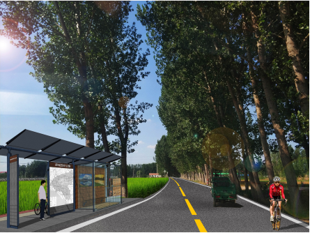 農(nóng)村公交站點(diǎn)設(shè)置:設(shè)置間距為1km,如與村口、道口可考慮實(shí)時(shí)縮短或增加距離 ;車(chē)站滿足候車(chē)功能同時(shí)可融合互聯(lián)網(wǎng)+的相關(guān)服務(wù)信息,例如二維碼查詢車(chē)次運(yùn)營(yíng)情況及篩選去周邊區(qū)域車(chē)次。