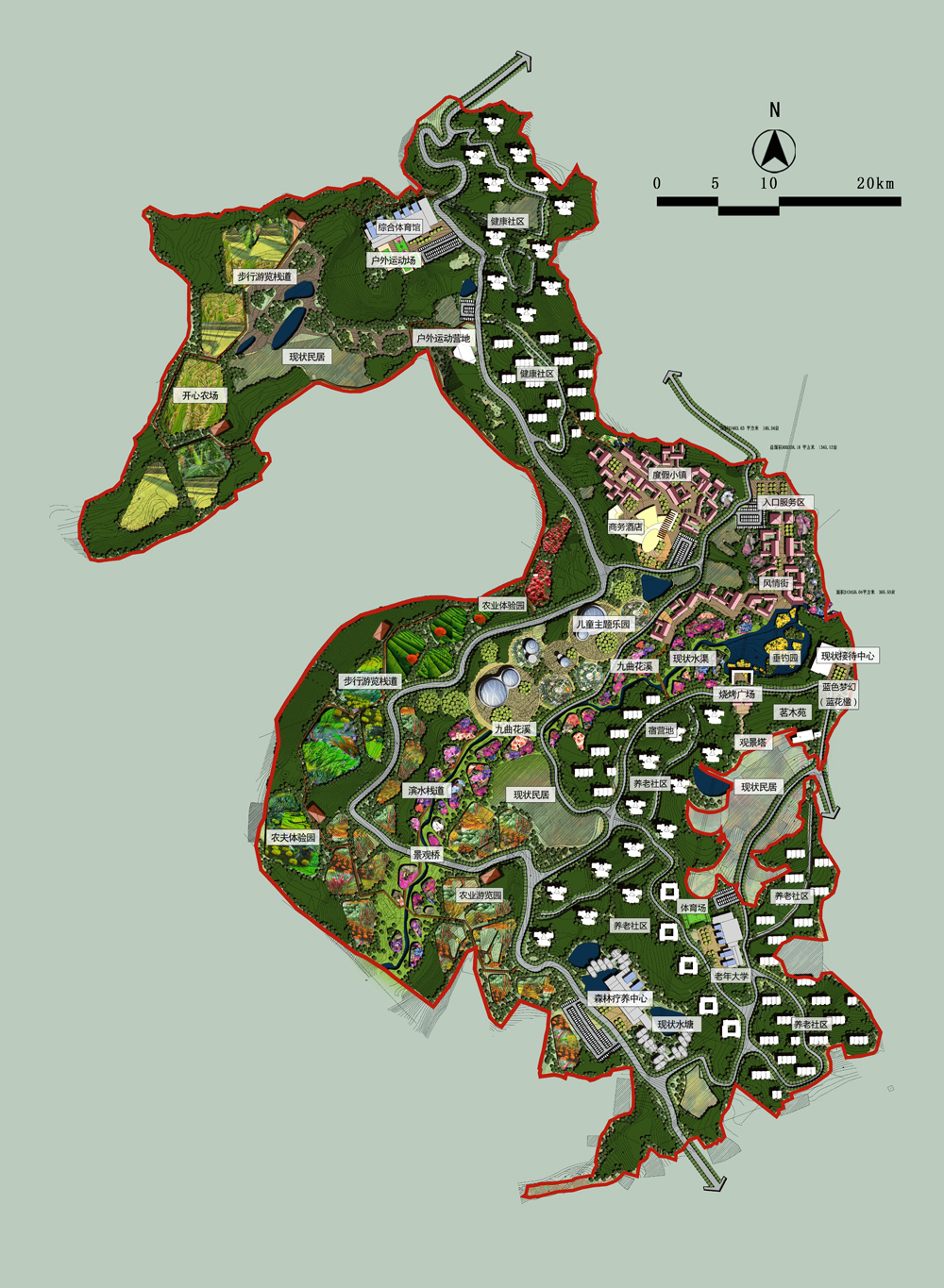 以山、水、田、園、林為自然環(huán)境基底;以萬(wàn)州特色花果文化、休閑文化為主線;打造以花果為主題,以特色農(nóng)業(yè)休閑、文化養(yǎng)生、養(yǎng)老居住為主導(dǎo)產(chǎn)品形態(tài),滿足游客休憩、康體、娛樂(lè)、度假、養(yǎng)生養(yǎng)老居住等多樣化需求的都市農(nóng)園綜合體